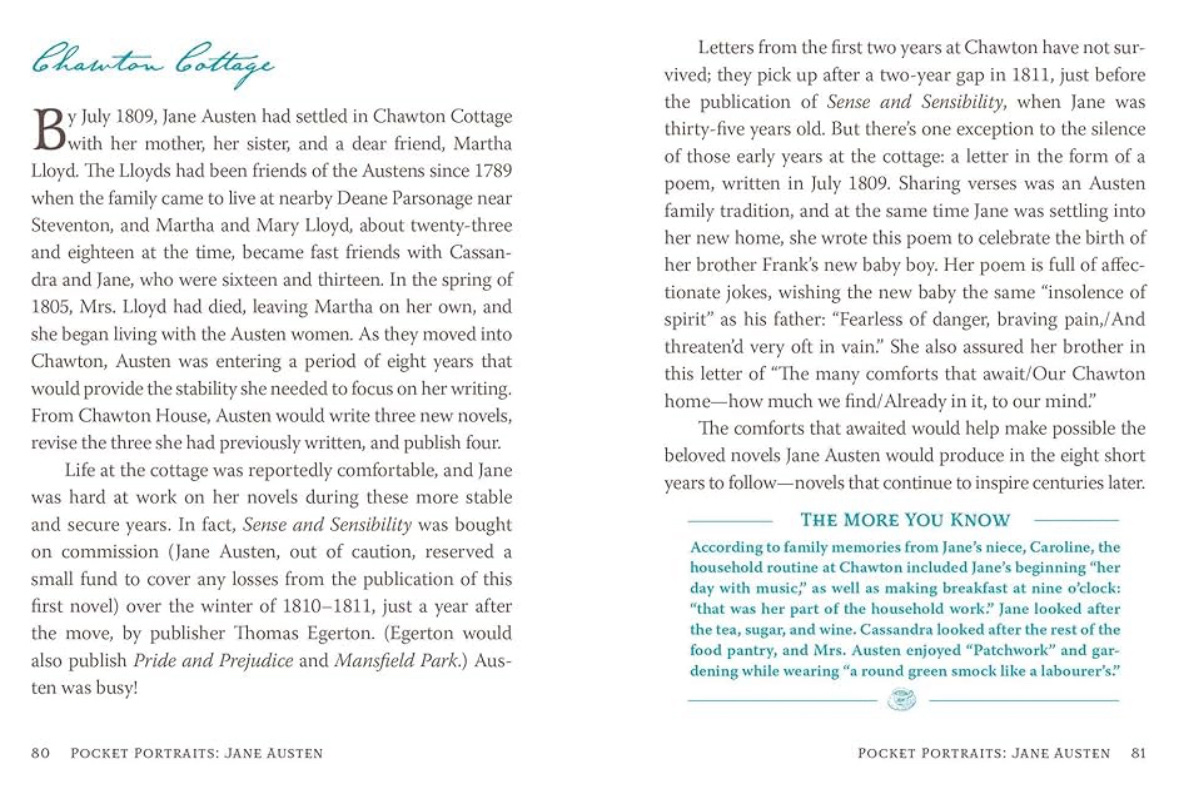 Claire: The book is structured in vignettes, which I love! With someone as well-known and well-loved as Austen, how did you decide which information you wanted to share and the particular Austen journey you wanted to take your readers on?